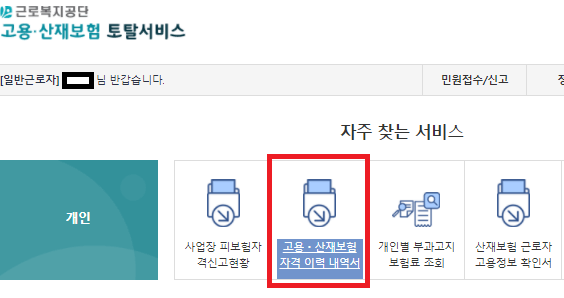 고용보험 가입내역 고용산재종합서비스 이용방법