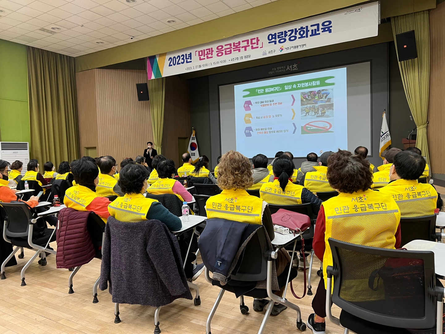 서초구자원봉사센터는 「국민응급대응단」 자원봉사자 180명을 대상으로 총 4회의 보수교육을 실시할 예정이다.