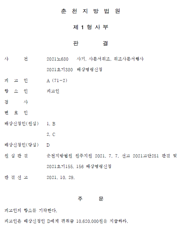 ④ 피고인은 공범으로부터 금융감독원 명의의 관리증명서와 금융기관 명의의 납부증명서를 공범자로부터 파일로 받아 자택 또는 이동통신사 프린터에서 출력하였다. , 피해자에게 전달했습니다. 이러한 서류는 피고인 또는 금융감독원 직원이 아닌 피고인이 소속된 법인이 가볍게 취급할 수 있는 서류가 아니며, 피고인이 아무런 권한 없이 피해자로부터 현금을 받는 경우 범죄 현장에 직접 만나 위의 서류를 현장에서 직접 입수하는 것 또한 합리적이지 않으며, 일부 완불 증명서에서 “상환액”과 “잔액” 란이 비어있는 경우도 있지만, 전액지급영수증 발급시 위의 항목을 기입하는 기관은 공란으로 둡니다.