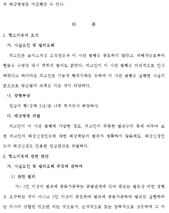 다음은 보이스피싱 수집 유죄 판결 샘플입니다.