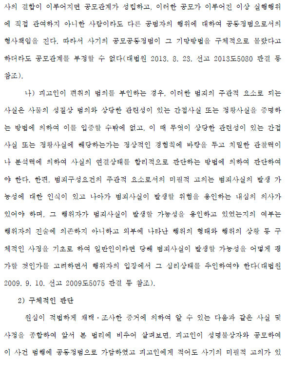 (보이스피싱 범죄에 연루된 피고인이 사기 공범자로 기소되어 피고인이 자신의 연루 정도가 공범이 아니라 공범일 뿐이라고 주장하는 경우., 모든 정황을 종합하여 볼 때 피고인의 연루 정도가 공동주체에 이르렀다는 점을 들어 사기를 인정한 판결)