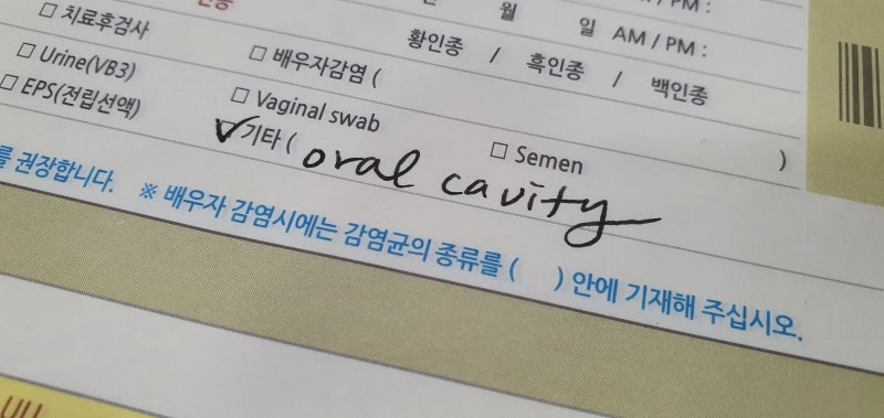 (STD12 검사의 경우 남자는 소변으로 검사, 여자는 질점막을 붓으로 긁어서 검사)