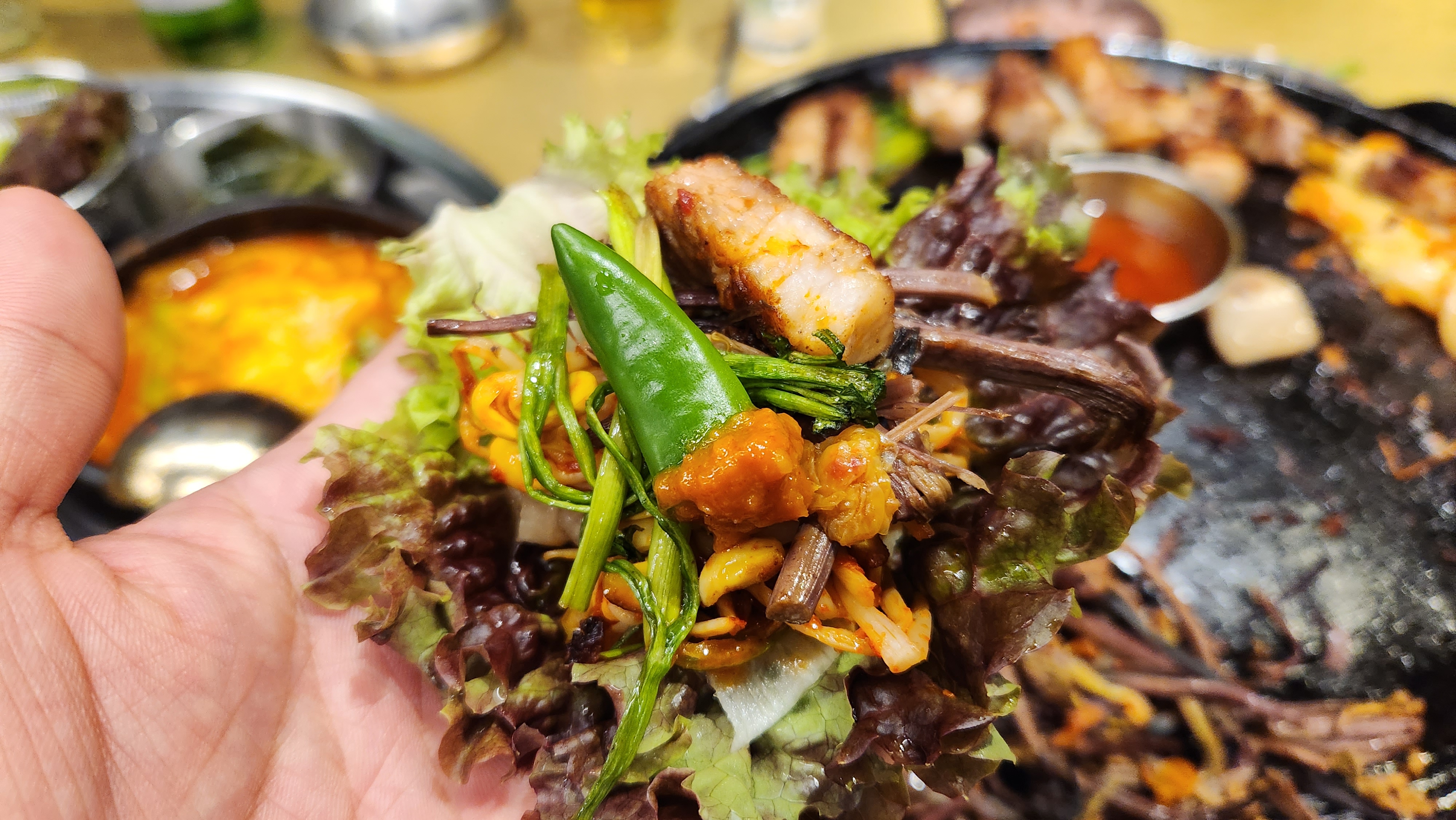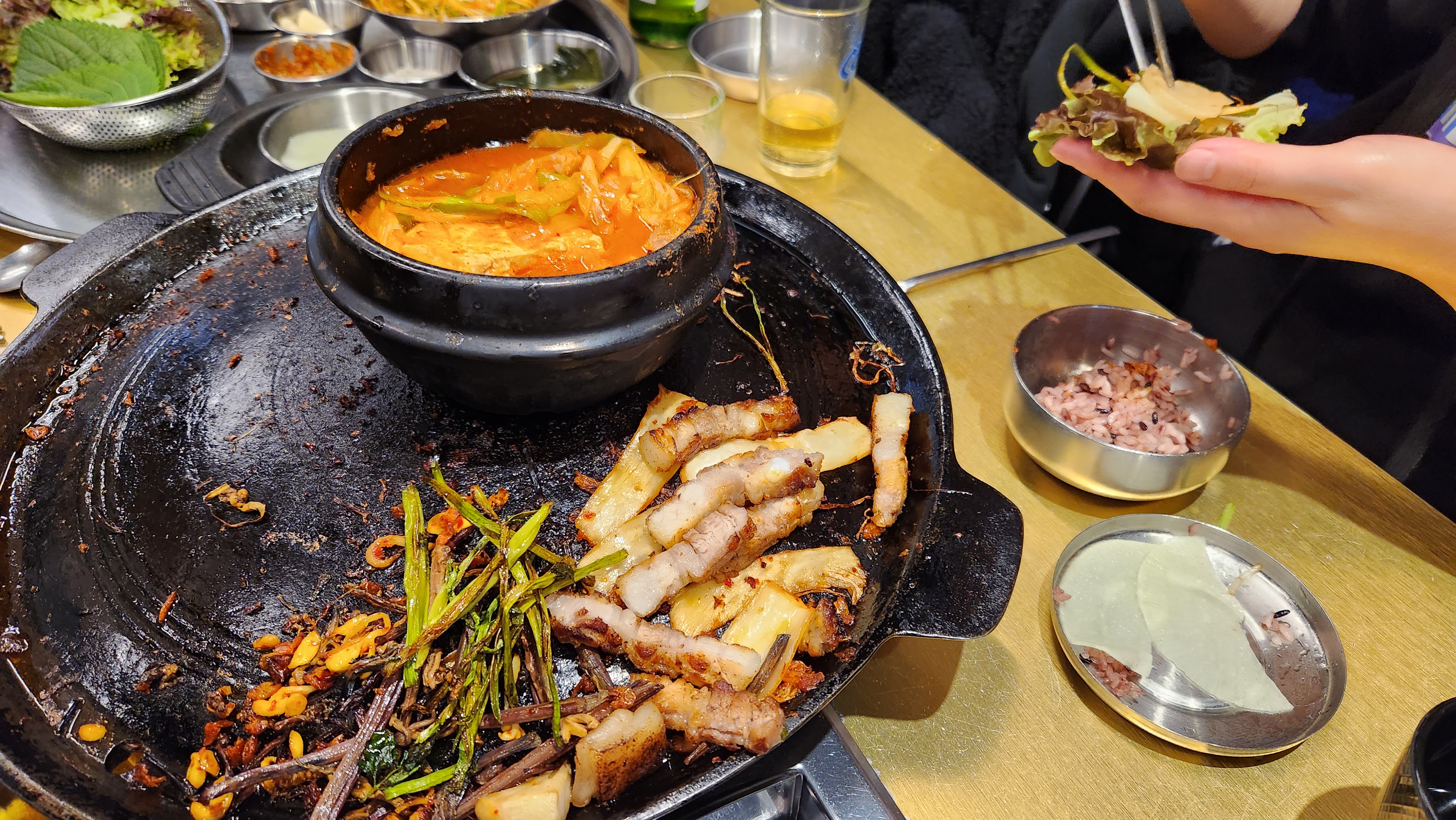 보통 놀부는 고기를 랩에 싸는 것보다 소금에 살짝 찍어 먹는 편이다. 여러번 말씀드리지만 고기 본연의 맛을 다른 반찬들과 함께 드시지 않고 고기만 드시고 밥반찬으로 드시면 모든 맛이 더 맛있어지는 느낌입니다. 하지만 그날 나는