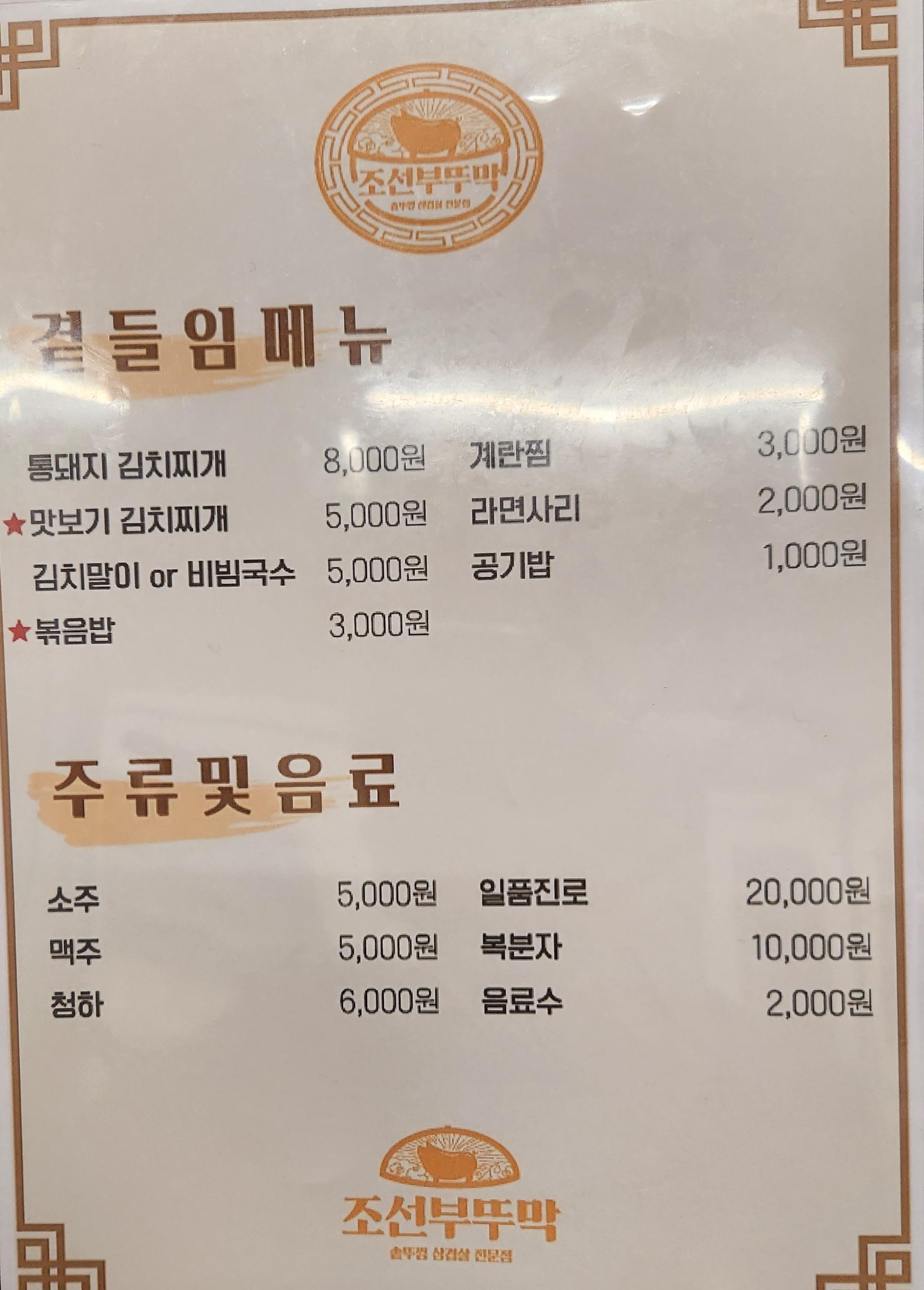 삼겹살(칠레산) + 통돼지김치찌개 + 밥덮밥