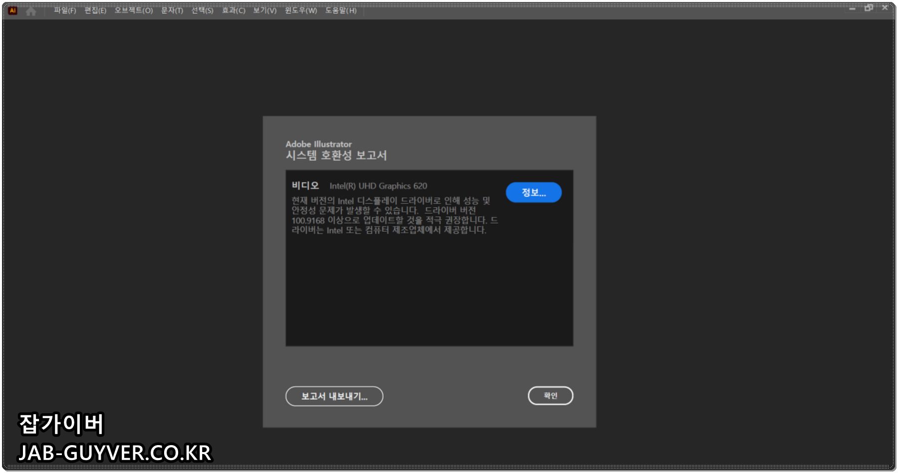 Illustrator 시스템 호환성 보고서의 오류(비디오).