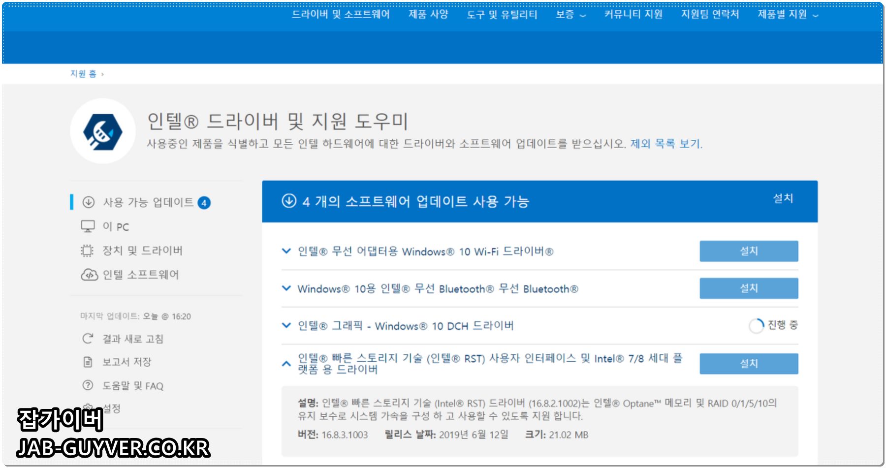 인텔® 드라이버 및 지원 도우미
