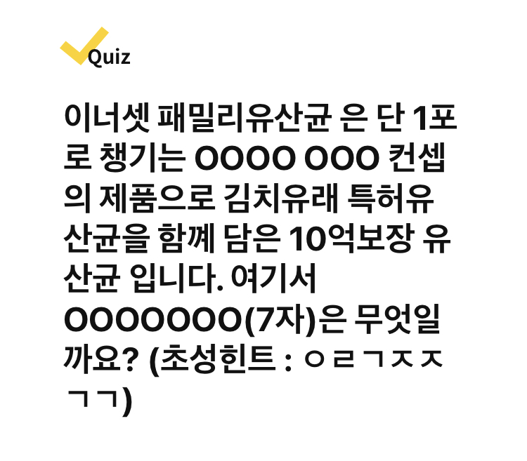 Answer 락토바실러스 활성화 이너셋 이너셋 이너셋 인너셋 패밀리 프로바이오틱스에는 소장과 대장에 따로 사는 11종 OOOOOO의 소장 건강을 위한 복합 균주가 함유되어 있습니다. 여기서 OOOOOOO는 무엇입니까? (초기 프롬프트: ㄹㅅㅅㄹㅅ)