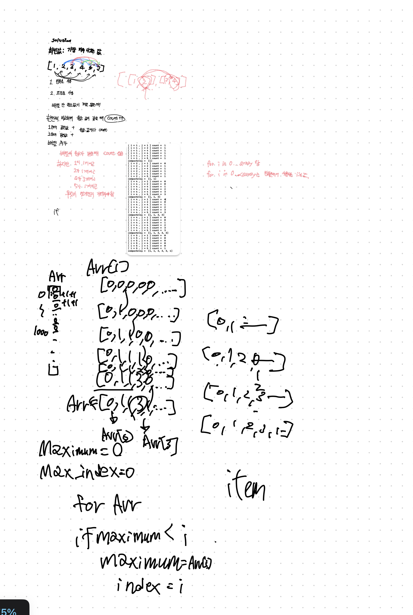 요소의 수가 최대 1000개이므로 문제를 사용하여 1000개의 새 배열을 만들고 숫자에 해당하는 배열의 자릿수에 +1을 추가했습니다.