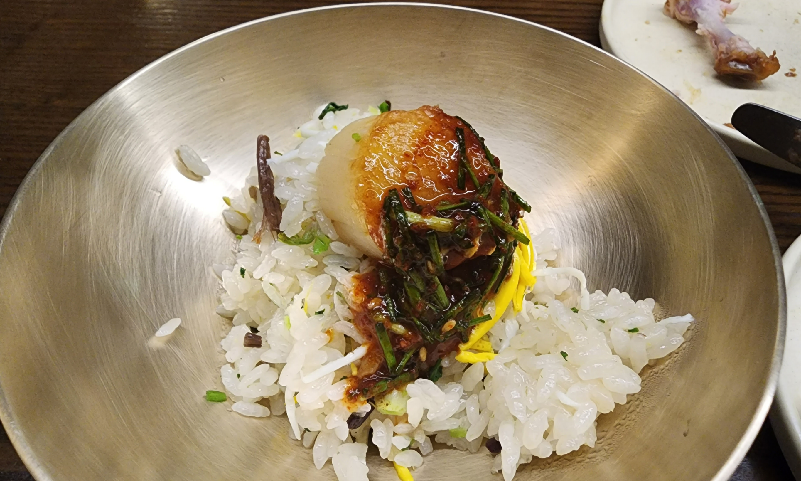 고사리와 표고 냄비 밥 가리비와 함께 제공 가리비 ‘황산제물밥’. 배불리 먹어도 비벼먹고 계속 먹습니다.