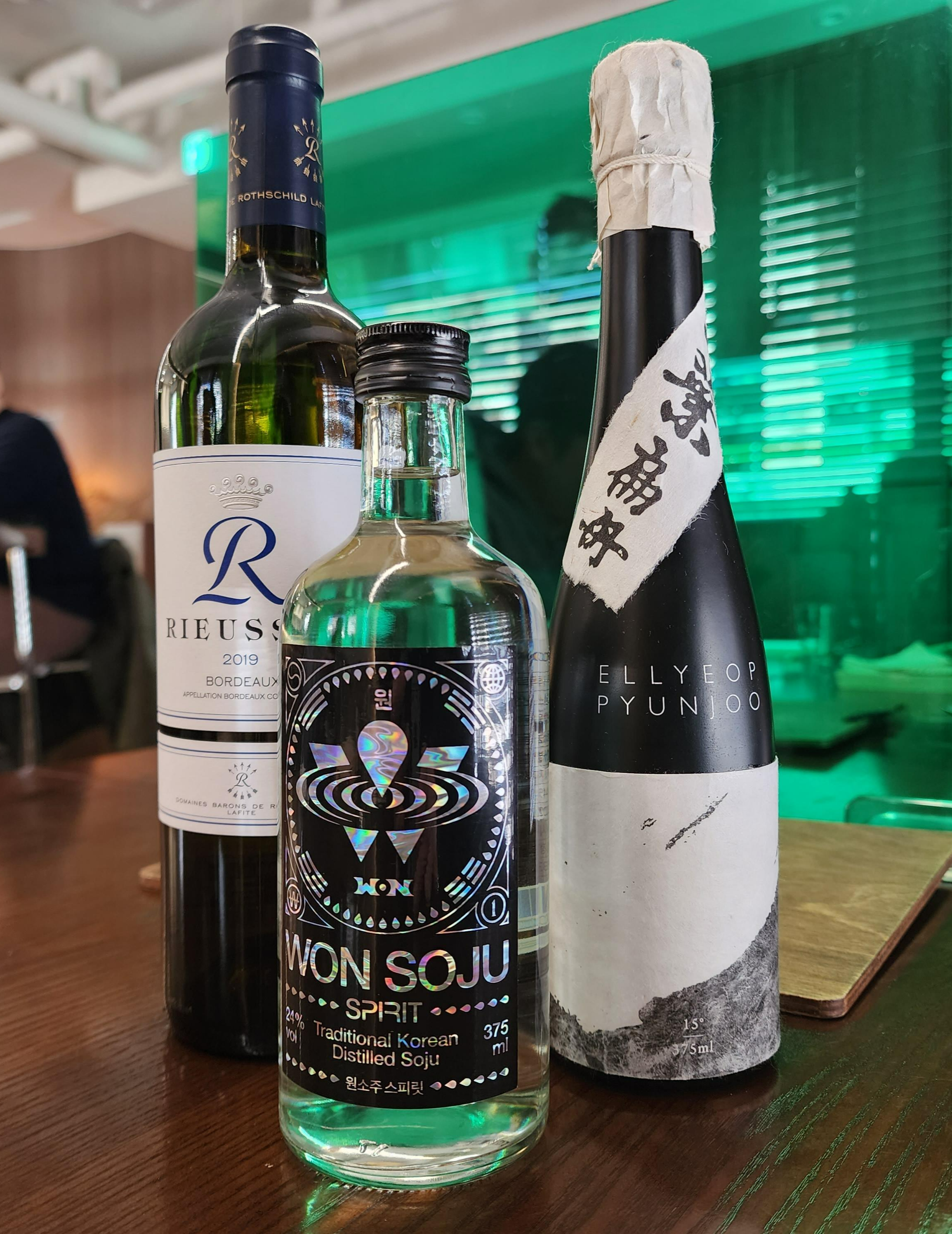 우리가 가져온 음료. 소원주는 촬영(?)용이라 안 마셨습니다. 일엽편주 약주는 와인셀러에 2021년 10월 병을 보관하던 녀석이다. 1년 5개월 된 남자.